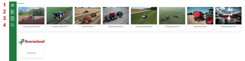 4.Brand Selection - If you sell products from more than one Kverneland Group brand, you can select the brand here. Please note that only products, quotes and orders of the selected brand are displayed.