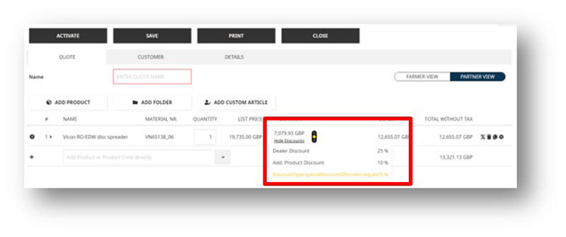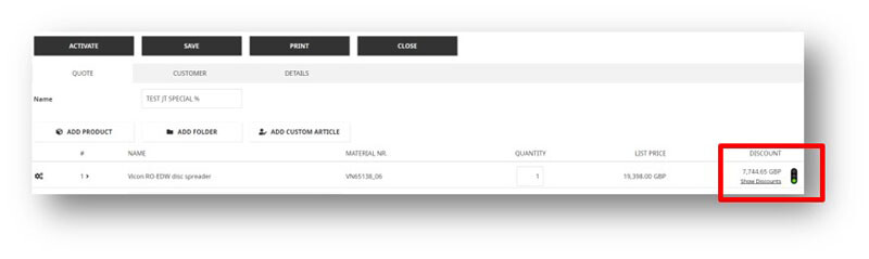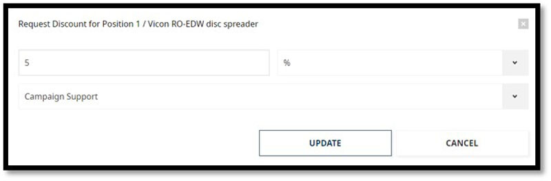 - The user also has to select one of the discount reasons (used machine, demonstration discount, campaign support).