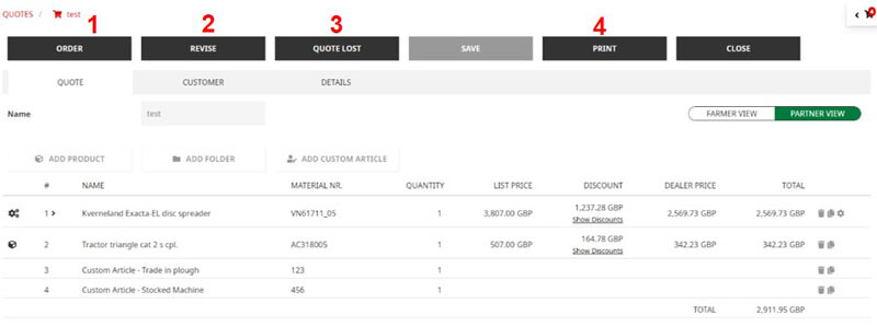 - Alternatively, you can order products directly to the Kverneland Group without creating an quote.
